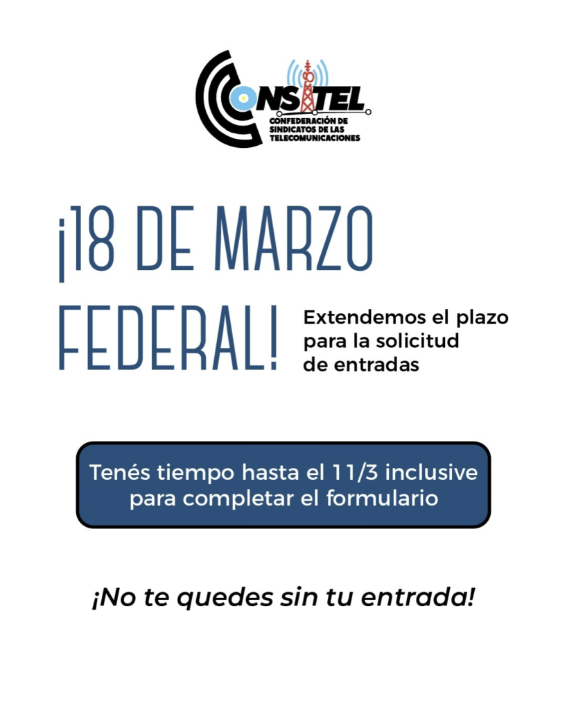 La CONSITEL ha organizado un encuentro a desarrollarse en el predio de los telefónicos en el polideportivo Cafulcurá situado en Ezeiza. Quienes deseen participar en el almuerzo deberán solicitar su entrada en el siguiente link (hasta el 11 de marzo):