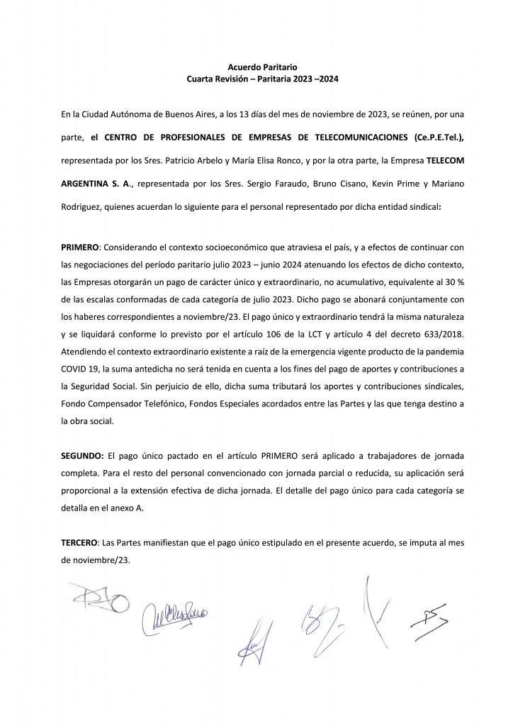 Acuerdo Paritario Cuarta Revisión – Paritaria 2023 –2024