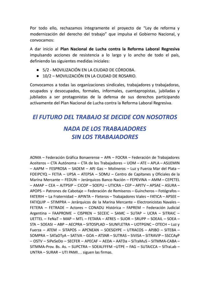NO AL PACTO CONTRA LAS Y LOS TRABAJADORES By GrupoPrensa on 29/01/2026 in Comunicados de Prensa CDC – Comisión Directiva Central